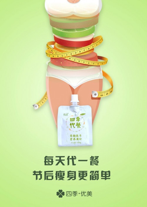 代餐食品通常是指可取代部分或全部正餐、能够快速为人体提供各种营养物质的食物,目前市面上代餐食品种类繁多,包括代餐粉、代餐奶昔、代餐饼干、代餐粥等。随着市场扩容,代餐产品多元化趋势显著,越来越多的企业推出主打代餐减脂的产品,代餐食品市场不断增长。以四季优美四季代餐为例,它是以果冻为载体的创新型代餐食品,面世以来受到整个新生代消费者的热力追捧。